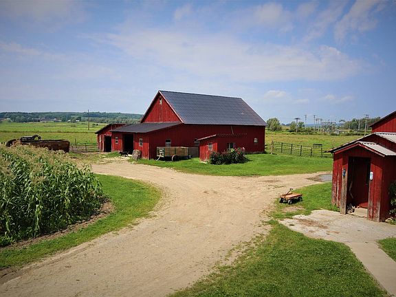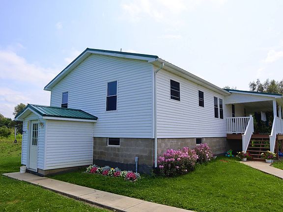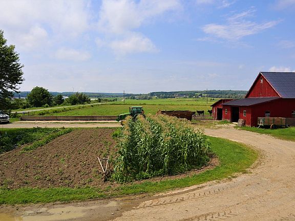 In the quiet countryside of South Dayton is a little hobby farm or farmette that is charming and located central to the quaint towns and hamlets of Cherry Creek, Leon, Balcom Corners and South Dayton. This farm is currently an active farm with a tenant raising calves and is well maintained, clean and shines with the pride of keeping a good home with a large garden and organized operation. The tenant is Amish however the home has the modern conveniences of electricity, well and septic services. A metal roof and full height basement are welcome features along with a covered porch to enjoy the breeze. The 2 bedroom, one bathroom home was built in 2004, and boasts a mostly open concept design with a large kitchen and dining room compliment and shows no signs of age. A large main barn 30' x 40' with two stories is the center building to the property where it is home to several horses and a small family of pigs. 10 stalls and a tack/storage room also accompany this building. Next to the main barn is a second barn, all open pole barn 22' x 114' and being used for calves. A small storage barn is convenient to tools and equipment and a chicken coup finishes the outbuilding inventory. Completely fenced, the pasture is grazing ground for approximately 25 yearlings/heifers, where they have a pond to water and ample room to roam. The approach is inviting with a greeting of a large garden amongst a shady tree with a nice lawn. Pine Valley schools are almost walking distance from this property at less than a mile west of the property. With location and country charm a highlight of this listing , check this one out for a hobby farm, starter home or farmette. Price well to sell. - Country living - Quiet location - Newer home - Barns (3) - Chicken Coup - Fence - Covered porch - Garden - Pine Valley Schools - .5 miles East of Pine Valley schools - 2 miles south of South Dayton, NY - 3.3 miles North of Cherry Creek, NY - Close to Boutwell Hill State Forest - GMO's to convey - 2117 ft road frontage - Taxes $1,371