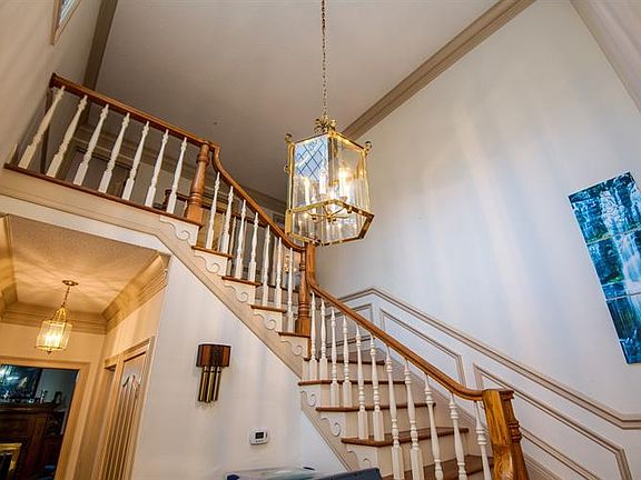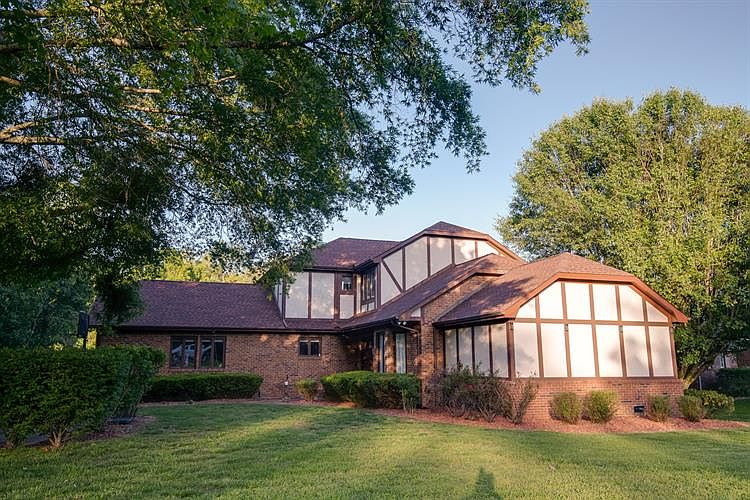 Tudor Style 4 bedroom 3.5 bath home, master bedroom suite downstairs w walk in closet, custom walk in tile shower and air jet tub in master bath, custom closet shelving, granite counter tops in kitchen, walk out storage above garage, hot tub, deck, fenced backyard, located on the 17th tee and 16th green of Lakewood Golf and Country Club Golf Course. 3 sets of windows in the kitchen will be replaced.