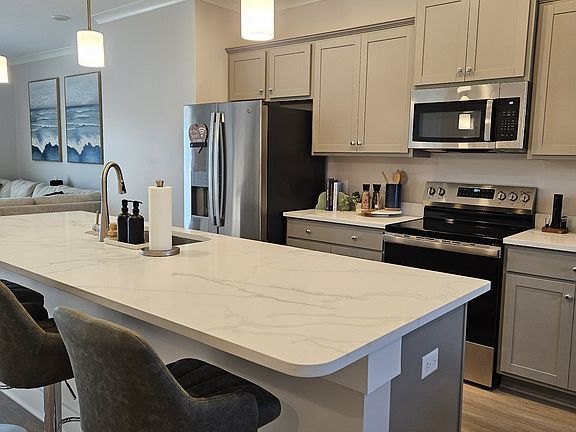This brand new 3-story townhome is located in the heart of Panama City Beach Fl. It features an open concept living with a private bedroom setup. This home comes fully furnished with every amenity and household good you can think of. There are 3 bedrooms, with two primary suites divided by two floors all coupled with their own en-suite. This home is perfect for traveling professionals looking to rent one room, roommates, or large families. There are two washers and dryers, one on the first floor and the second on the third floor. The kitchen is fully stocked with all the essentials and more. Dog bowls are even provided for your fur babies. There is a community pool located only a 1 min walk away from the front door and a dog park in the community. The beach is only a 5 minute drive away and Pier Park and numerous restaurants and attractions are within an 8 min drive. 3-12 month lease is available. Owner pays for garbage, tenant is responsible for water and electricity. First months rent a deposit due at signing. Military discount available.