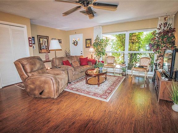 Immaculate...3 bedroom/2 bath/oversized 2-car garage home with 1,742 heated sq ft of living space. The interior features a 2-way split floor plan, large bedrooms, master bedroom with private bath, 4-sets of sliders for easy access to the backyard and Florida room, newer windows, newer Whirlpool kitchen appliances, newer wide plank laminate wood flooring in the living room and dining room and lots of storage. The kitchen is spacious with a large breakfast bar and eat-in area. Bonus room off kitchen can be used as a separate sitting room or den. Home has true pride of ownership. Backyard has 3 avocado trees. Sprinkler system is on well. Roof 2004. A/C 2010. Windows 2010. Items that don't convey: chandelier in dining room and refrigerator in garage.