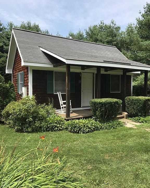 Live the life in North Amherst! Charming well cared for bungalow cottage on a beautiful lot! Beautiful large New England stone walls greet you into your own private oasis...this is the perfect retreat for a single person or a couple looking to live economically yet so close to all this corner of the world has to offer. the living area opens into the kitchen and has cathedral ceiling and beams and pine wainscoting. Access to the M&M trail system is south of this property. The front porch is perfect for a couple of rocking chairs and there is a prate deck off the bedroom to watch the stars of put a hot tub! Use the electric fired heat pump or add a wood or pellet stove to the existing thimble and chimney! There is a washer and dryer hook up and the unit conveys. This cottage is also offered in a package with #294, the cottage to the south. This is a rare and unique opportunity in the Valley!