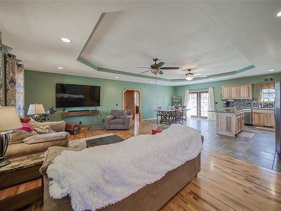 Unwind in Style! Escape the ordinary in your dream 3 bedroom, 2.5 bathroom haven nestled on 1.75 acres m/l in Houston. Boasting a detached workshop and a large shed, this property offers both elegance and practicality! Stepping into this meticulously maintained open-concept oasis, your eye is drawn to the tray ceiling and gorgeous hardwood flooring flowing throughout much of the home. Your kitchen features custom cabinetry, a center island with seating, beautiful tile backsplash, sleek stainless steel appliances, and ceramic tile flooring that flows into the dining area. The spacious primary bedroom showcases tray ceilings and offers a huge ensuite bathroom with a double vanity, jetted tub, tile shower, and a huge walk-in closet which can be accessed from both the bedroom and bathroom. There is no shortage of storage space with the attached 2 car garage, a shed, and the shop with 2-car garage with a half bath, ideal for a home business. Don't wait - Schedule your private tour soon!