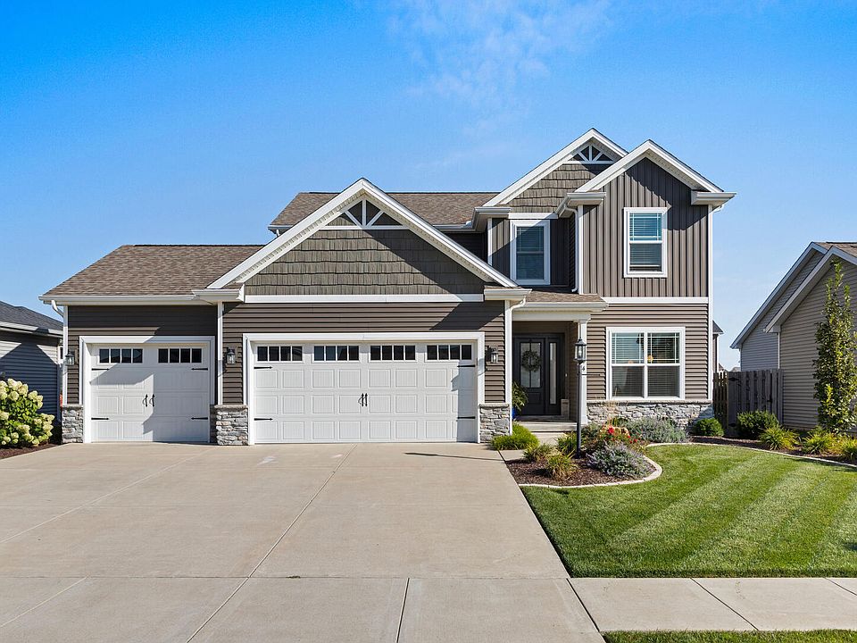 Prepare to be amazed by this spectacular 2-story, 2151 sqft. home that defines the concept of "better than new." Nestled within Prairie Meadows subdivision, this pristine residence offers the perfect blend of modern elegance. Over the past 5 years, this home has undergone a transformation. Step inside to discover an array of recent updates that showcase the care and attention to detail that has gone into making this residence truly exceptional and more than just your typical spec home. Updated Angura White Oak hardwood flooring flows seamlessly throughout the entry, kitchen, and dining areas. The kitchen features new hardware, light fixtures, new appliances, and timeless granite counters with a tasteful tile backsplash. The entire first floor has been thoughtfully updated with new light fixtures, and the first-floor office and half bath now boast beautiful wallpaper accents. The professionally designed backyard is a true outdoor oasis, featuring a spacious paver patio, a cozy gas firepit, a charming pergola that includes a solar shade, and a privacy fence. Four spacious bedrooms are upstairs, including a luxurious master suite with cathedral ceilings, and convenient second floor laundry. The 3-car garage is heated and the basement has been finished to include a large rec room with a wet bar area, an additional full bathroom, and a basement bedroom. It's an ideal space for movie nights, game days, or even hosting guests. This home is a testament to thoughtful design and meticulous maintenance, offering a lifestyle of luxury and comfort. Don't miss your chance to call this Prairie Meadows gem your own. Schedule a private showing today!