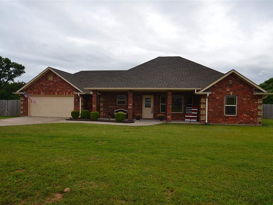 Better than new home in Hallwood Estates! This clean, 3 bedroom, 2 1/2 bath home offers approximately 1700 sq ft of living space. Vaulted ceilings in the living room with a corner gas log fireplace. Spacious kitchen with granite, breakfast bar, stainless appliances and loads of storage space. Large master suite with his & her sinks, whirlpool tub, separate shower and his & her closets. Each guest room has a vanity with storage under and walk-in closets. This home is nestled on approximately 3/4 of an acre with wood privacy fence, established yard and great curb appeal! Short commute to Lawton/Ft. Sill.