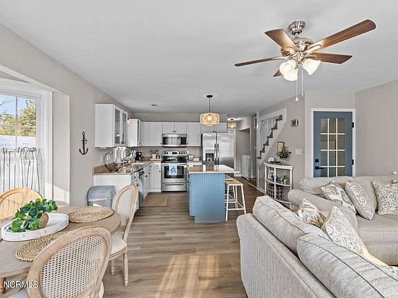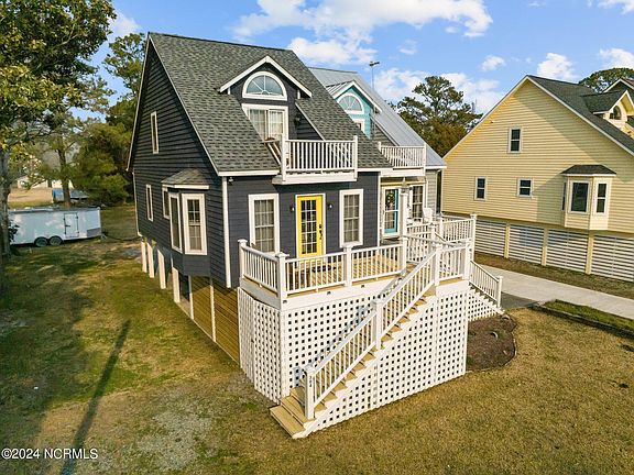 Looking for the perfect get away? Located in the heart of Oriental and walking distance to shops, restaurants and most importantly the water! This beautiful elevated home offers an open floor plan with comfortable seating and dining area! Updated kitchen with stainless steel appliances and kitchen island. Upstairs owner's suite offers incredible space with plenty of closet space and plenty of storage! Covered parking and incredible outdoor entertaining area complete with oversized outdoor swing! Enjoy the beautiful view from both your front porch and 2nd floor balcony! This home is beautifully furnished to create that home away from home feel! Whether you're looking for your home away from home, investment property or newest STR property... this could be the one for you!