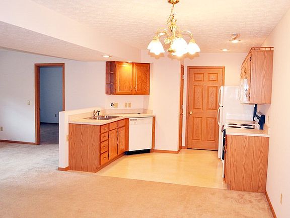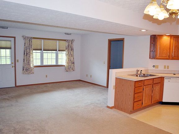 Perfect condo right in the heart of the Village! Ground level condo built in '97 with a covered front porch enjoys a Main Street view! All the appliances stay. Cordless blinds and curtains stay, too. Carpets were just professionally cleaned and a fresh coat of paint throughout make it move-in ready. Detached garage is extra deep for additional storage. The parking lot was just freshly sealed. $80/mo HOA fee covers lawn care, snow removal outside building insurance and trash.