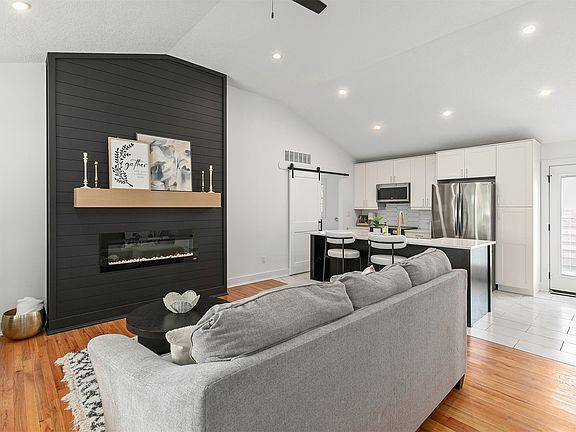 Cozy fireplacePremium fixturesRefinished hardwood floorsVaulted ceilingsHigh-end tileQuartz countertopsDesigner finishes
