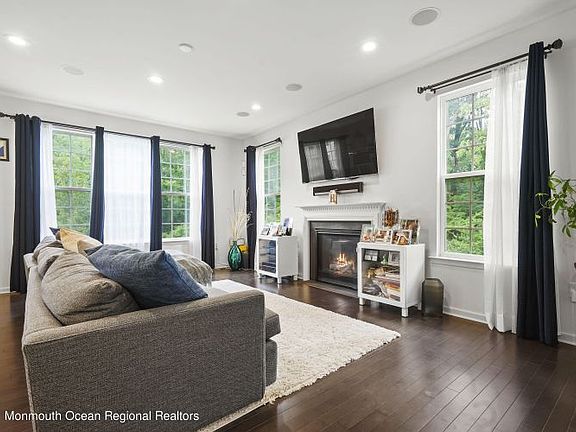 Welcome to the Princeton Model in desirable Cambridge Crossings. This 3 bedroom 2.5 bath end unit home has 2 car garage. Many upgrades include Hardwood floors on the first level. Open floor plan. Kitchen with Quartz countertop, stainless GE appliances, and soft close cabinets. Living room has smart lights, stereo speakers and Gas fireplace. Second story landing with nook great for work area. Master with walk in closet full bath with large shower, soaking tub and double sink granite Vanity. 2 other generous bedrooms with Jack and Jill Bath with double sinks and granite Vanity. Walk out Basement has a finished area great for kids playroom, work out area , or home office. Sliders lead to your private fenced area. Close to NYC transportation do not miss this one.