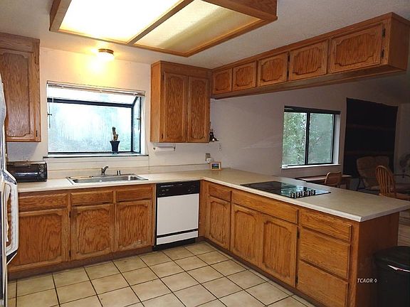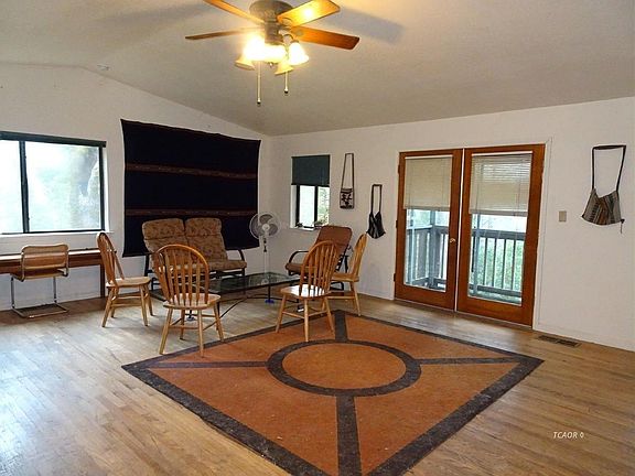 9.45 Acre Fenced and Gated Home Water storage tanks holds 50,000 gallons of spring water. Featuring beautiful hardwood and tile floors, this 3 bedroom, 2 bath home has lots of charm with it's spacious open concept kitchen, living and dining rooms. Roomy kitchen features a breakfast bar, garden window and the living room, a wood burning stove and screened deck; perfect for letting in fresh air. Master suite is very roomy with double closets and it's own deck. Master bath has a handsome walk-in shower and ample cabinet & counter space. Secondary bedroom are also spacious with ample closet space. The attached two car garage comes complete with a washer and dryer already hooked up. For additional covered parking, there's a carport attached to the garage. You'll find plenty of storage space under the house. Seller may consider carrying with acceptable down payment and acceptable terms.