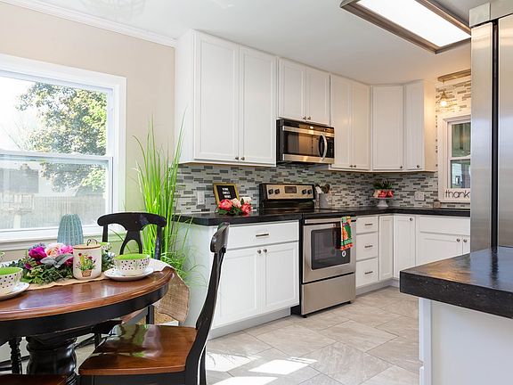 Move right in to this completely remodeled 3 Bed Ranch. Upgrades Galore! Huge Eat-in Kitchen remodeled with concrete counters, shaker cabinets, and stainless appliances. New fixtures & lighting throughout; refinished gleaming hardwood, new windows, newer roof, newer boiler, newer electric, newer hot water. Covered front porch welcomes you in to spacious family room w/ fireplace. Carport, Shed, Manicured & partially fenced large yard. And as an added bonus a huge clean 1200 sq ft basement waiting to be partially finished for more space. Home Warranty Available! Don't wait!!