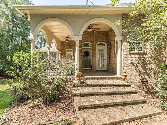 Exquisite French Provencial - Custom-Built & Full of Charm! This absolutely stunning home is located adjacent to Fairway #17 in North Macon's Barrington Hall Golf Community and offers a private retreat with so many must-see finishes and details including walk-in closets in all 4 bedrooms, grand ceilings, gorgeous archways, two fireplaces, a flowing floor plan, a sun-drenched veranda and terrace, walk-out basement for storage, and modern conveniences like a whole-house indoor/outdoor speaker sound system throughout. Primary bedroom features tons of privacy away from the other bedrooms, a 2nd fireplace and sitting area, large walk-in his and hers closets, tray ceilings, double crown molding, and a spacious en suite bath with jacuzi tub, walk-in shower, and double vanities. Recessed lighting, chandeliers, hardwood and tile floors with carpet in the bedrooms, updated kitchen and bath countertops and appliances. Members may enjoy exclusive access to golf, clubhouse restaurant, swimming pool, and garden club. Proxemic to award-winning public and private schools, shopping, dining, I-75 and I-475. ***Home is Occupied: Agent-Accompanied Showings by Appointment Only. There will not be a sign in the yard.***