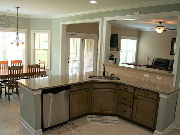 - RoomKitchenFeatures: Granite Counters, Pantry, Recessed Lighting, Eat-in Kitchen, Bay Window, Cabinets-Stained, Bar, Floors-Tile, Backsplash-Tiled