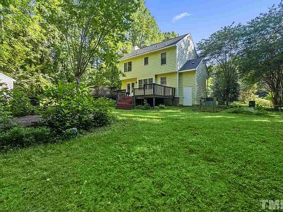 Don't miss this Hidden Gem on 1.5 Acres! Home sits on a beautiful lot w/concrete driveway lined with crepe myrtles and brick columns. Hardwood floors entire first floor, stairs, second floor hall. Separate dining room could be office. Large family room with fireplace and beautiful view of the peaceful private backyard. Huge tiered deck overlooks nature and beauty! Nice storage building is a plus. New roof 2018! Priced for quick sale in as is condition. Great community close to Hwy 70 Bypass. Make an offer