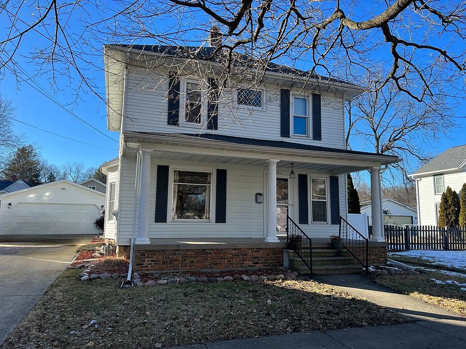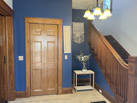 This beautiful home has modern updates as well as the original charm. The eat-in kitchen boasts vaulted ceilings, stainless steel appliances and ample cabinet space. The dining room is open to the living room and the office area. Beautiful foyer showcases the open staircase. Two sets of pocket doors and main floor laundry round out the main floor. The walk up attic is great for storage. The fenced in backyard offers a patio, covered deck, fire pit and 2 sheds. The large garage is heated.