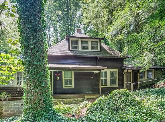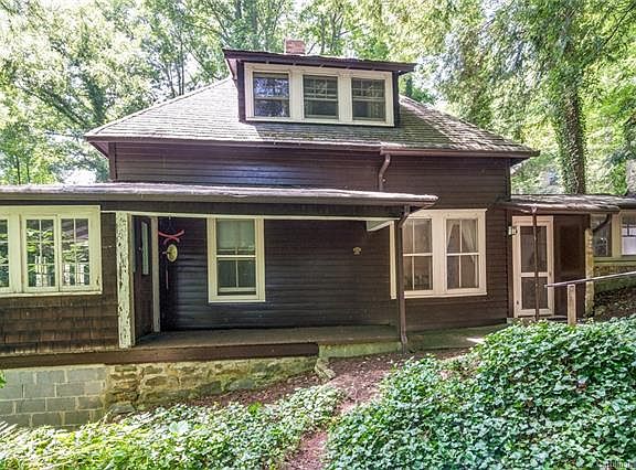 Quintessential Summer cottage in Montreat. Located where it is a short, almost level walk to the lake, and very close to the hub(playground, Assembly Inn, Montreat College, auditorium, etc.) of the Town. Convenient to hiking trails and the beautiful Flat Creek. This house was built in 1915, and remains very original. One hundred year old character with covered porch, decks, and beaded pine. Relatively large and gentle lot for Montreat. House can be configured with separate apartment if wanted. Two kitchens. Numerous bedrooms. There is no existing heat source. Newer plumbing and electrical. With attractive, distinct roof lines and a wooded setting that is close to the activity but not on the main road. House had a tree fall on it. Price has been reduced and property is for sale AS-IS. Main house appears to be undamaged structurally. Porch and back room sustained major damage from tree. Unsafe areas are cordoned off. Entry to these areas is prohibited.