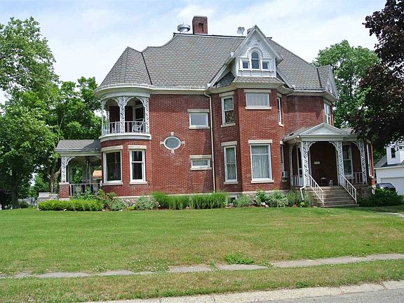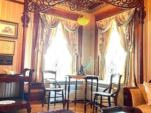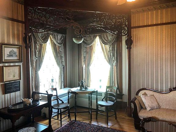 A truly stunning Victorian Lady, this former Governor Bowen's home is waiting for new owners to call her their home. This remarkable home has been lovingly cared for over the years with its magnificent character highly respected and remaining. The current owners have updated the kitchen with beautiful Amish made custom cabinetry, granite counter tops, heated ceramic tile flooring, and a built in wall cabinet with expandable kitchen table creating a truly welcoming kitchen. A newly rebuilt gas fireplace is a welcoming addition to the kitchen area. They also added a spacious wine cellar in a basement and the most beautiful 4 foot deep pond which is surrounded by a fantastic collection of perennials. The pond has a flowing waterfall and is operational all years long. Original hardwood floors in each room have been designed and crafted with remarkable inlaid patterns. Each doorway has intricate decorative spindle work, many ceilings are wooden with carved panels, high ceilings, carved woodwork, archways, and of course, chandeliers. The dining room is decorated in a formal theme with a sparkling chandelier, and the large fireplace is in the middle living room. Of course, each room has large, nearly floor to ceiling windows which allow the sunlight to flood the area. Pocket doors on the main floor are surround by the most beautiful, time polished wooden frames. Bay windows, curved alcoves, a curved 2nd story balcony, corner wooden linen cabinet, chandeliers, period lighting, open front porch, and so much more make this spectacular home a true wonder. The third flood has had many uses over the years some which include a formal ballroom, exercise room, child's play room, billiard room, and hobby room. This home has only been available a few times over the past 50 years and now is your chance to make it your own dream home. Call quickly for your tour before it has the next new owner.