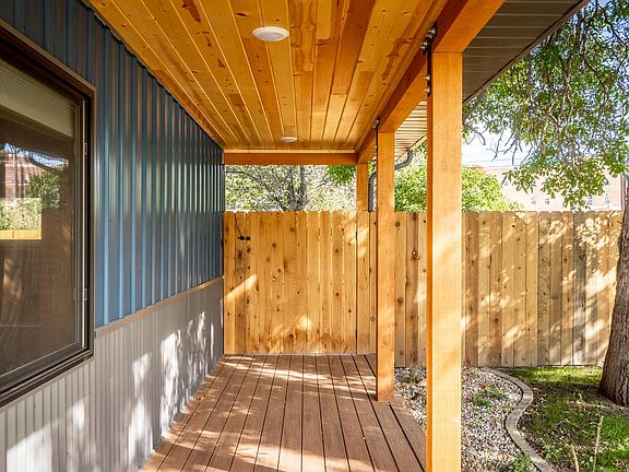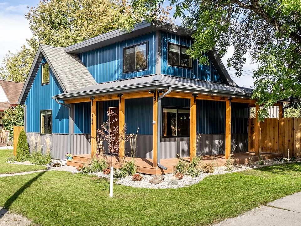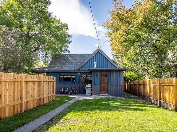 Available as a furnished, monthly vacation rental. NOTE: There is currently construction going on in the vicinity of this home. BRIEF DESCRIPTION: No need to stay in a cramped loft or condo to be downtown! Grand Blue is just 3 blocks from downtown Bozeman but located in a quiet neighborhood setting with a spacious, fenced-in yard. The home is newly renovated with modern metal siding and a well-equipped kitchen. GENERAL LOCATION AND SETTING: Grand Blue is in the heart of Bozeman 3 blocks from the west end of downtown. A brewery, distillery, bars, and multiple restaurants are all within a five-minute walk of your home. The home is located on a corner lot in a residential neighborhood with off-street parking available. BEDROOMS/BATHROOMS: The home has three bedrooms and one bath. The first bedroom is on the ground floor with a queen size bed. The full bath is next to this bedroom. Upstairs there are two cozy loft-style bedrooms: one with a queen size bed and the other with a twin. KITCHEN: When you don't feel like going out for your next meal, this updated kitchen will provide an excellent setting for cooking family meals. The kitchen has new stainless steel appliances, spacious granite countertops, and plenty of storage space for its size. LIVING ROOM: The living room blends into the dining room and offers plenty of seating to enjoy TV and movies on the large LED TV. OUTDOOR AMENITIES: A large patio and abundant outdoor space allow you to enjoy Montana's fine summer weather at Grand Blue. Sit on the covered front porch and enjoy the neighborhood or head out to the large backyard and patio to grill and eat outside. ACTIVITIES NEARBY: All of downtown Bozeman and its amenities are at your fingertips while you stay at Grand Blue. When you'd like to connect to Montana's natural beauty a bit more, you can walk over to Beall Park or take a short drive to the many trailheads that surround Bozeman. In the winter Bozeman's cross-country ski trails are within a ten-minute drive and Bridger Bowl is 25 minutes away. Available as a monthly vacation rental. A one-time combined cleaning and damage protection fee of $400 will be assessed.