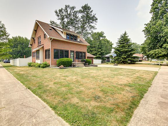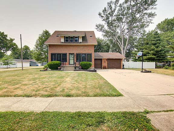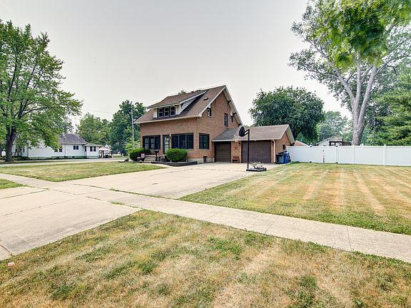 Lots of extra features on this 3 bedroom brick home! Main level features large living room w/fireplace, kitchen with updated lighting and all Stainless Steel appliances. Upstairs has all 3 bedrooms w/hardwood flooring and 2 large walk in closets in the Master Bedroom. Bathroom has been remodeled as well. Back yard has a large deck, patio w/TV & fireplace in the cement, play area, white vinyl fencing and 2nd garage. Basement has a finished family room & plumbed 2nd bathroom. Home updates include (2017) Roof, (2020) windows, lighting, furnace & AC, (2022-23) LVT kitchen floors, patio slider door, overhead garage door on 2 car garage, bathroom, lots of extra storage room in basement, garages, and attic. Take your "Time-out" now and call for a private showing before the SOLD sign goes up in the yard and it's game over!