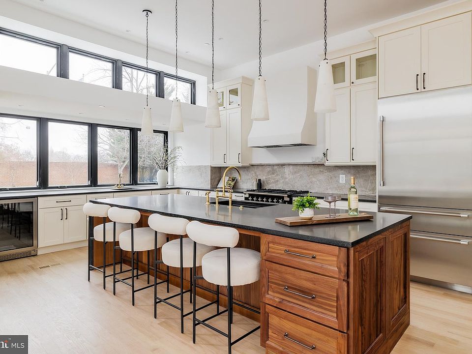 Once home to Washington’s iconic Hoagie House, 304 N Street NW has been reintroduced as a thoughtfully designed new construction residence within a boutique six-home development. Integrating the property’s historic context within a contemporary design, the residence is a poster child for sophisticated urban living, offering a refined four-level lifestyle defined by curated materials, thoughtful design, and modern functionality. Executed by an award-winning builder—recognized as an eight-time Contractor of the Year by the National Association of the Remodeling Industry, recipient of Historic Restoration of the Year, and a Chrysalis Award winner, with features in Remodeling Magazine and on the cover of The Tile Shop—this home reflects an exceptional standard of craftsmanship and design integrity. An ethereal end unit with ample exposure to natural light, the home’s pale brick exterior accented with dark trim paints a curb appeal exuding restrained elegance. Entry into the fully open concept main level is distinguished by towering 11-foot ceilings, wide-plank oak flooring, and motorized window treatments. A generous 2,950 square feet of living space is spread across all levels, finished in a tastefully luxurious palette. The free flowing living and dining areas are anchored by a fireplace finished in Nero Marquina marble, which continues through the built-in surfaces for a cohesive architectural statement. At the heart of the space is the kitchen, painstakingly designed as a practical daily area and a bold statement of design prowess. Featuring a walnut island, Taj Mahal quartzite surfaces, custom cabinetry, a full Thermador and Bosch appliance package, and an AGA range, it is the culinary enthusiast’s dream. The upper levels are dedicated to private living spaces. The primary suite is arranged as a quiet retreat, with a luxury hotel-inspired bath showcasing a freestanding soaking tub, walk-in shower, slate herringbone mosaic floors accented by brass and bronze fixtures, and a floating walnut double vanity. Dual walk-in closets with custom built-ins complete the suite. Secondary bedrooms are well-proportioned and feature custom closet systems and en-suite baths. The fully finished lower level offers flexibility for a variety of uses, including guest accommodations or income potential. It includes a bedroom with en-suite bath, a dedicated laundry room, a mini-bar, and a private walk-up entrance that enables total self-sufficiency. The rooftop level serves as an extension of the living space and is accessed via a motorized retractable skylight. The terrace is outfitted with porcelain pavers, an outdoor kitchen, and a brick fireplace, creating a functional outdoor environment suitable for year-round al fresco entertainment. Additional features include a private EV-ready parking space, LG Styler steam closet, dual laundry areas, and designer lighting and finishes throughout. Situated in one of Washington’s most vibrant neighborhoods, 304 N Street NW presents a rare opportunity to own a modern residence rooted in the city’s historical past while setting new standards for the urban lifestyle.