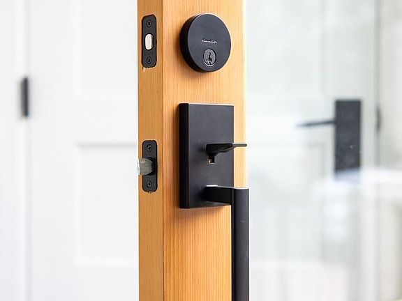 Luxury hotel-inspired bathDedicated laundry roomAga rangeDual laundry areasWide-plank oak flooringMotorized window treatmentsTaj mahal quartzite surfaces