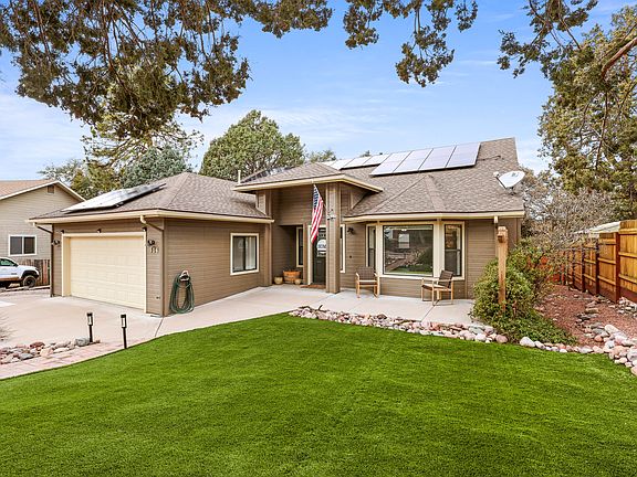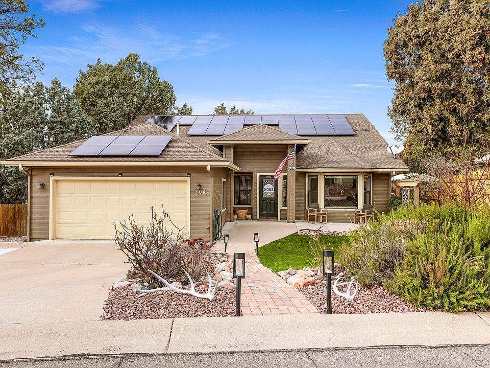 Outside, the charm continues with a fully fenced backyard offering privacy and security, while the front yard boasts a picturesque faux grass area, paver walkway, and patio—a perfect spot for outdoor relaxation. Additional highlights include a 2-car garage, a new roof (installed in 2023), a new water heater (replaced in 2024), fresh carpeting, updated fixtures, a newly remodeled bath, an efficient pellet stove, and a new solar system (installed in 2023) to keep utility bills in check. Utility bills are available for your review, ensuring transparency and peace of mind.