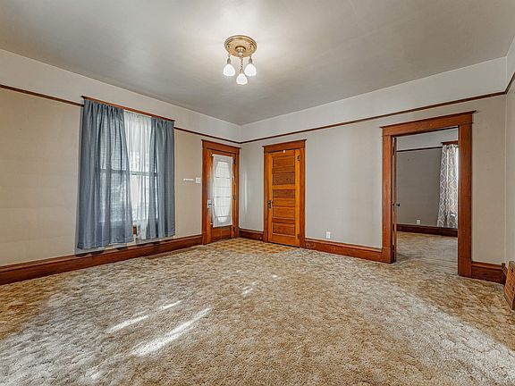 Roomy bedroomsVintage light fixturesEat-in kitchenWonderful covered front porchVinyl replacement windowsClassic natural woodworkGutter guards