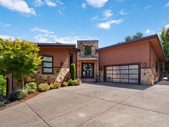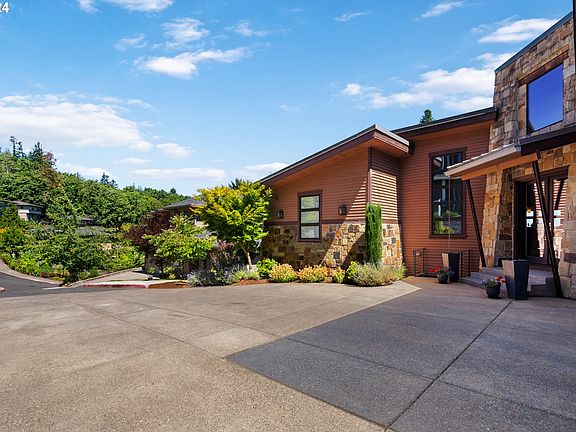 Set above the skyline of the West Hills, this custom-built showstopper feels like your very own Pacific Northwest Lodge. Space for everyone - perhaps multi-generation living. Just minutes from Portland's vibrant NW District and the Pearl, enjoy breathtaking views of Forest Park, Mt. St. Helens, Mt. Adams and the Columbia and Willamette Rivers from the moment you step through the door. Stunning open floor plan seamlessly connects the warm vaulted living and dining areas to the impressive chef's kitchen. Greet guests with a cocktail crafted at one of the home's two bar areas, then invite them to the living room to take in the mesmerizing views while basking in the warmth of the fireplace surrounded by gorgeous stone work. Cuddle up during storms and hear the soothing sounds of rain on the metal roof. The kitchen itself is a culinary masterpiece, showcasing an oversized island, beautiful stone backsplash, hickory floors, and high-end appliances. Or maybe you'd prefer to use the outdoor kitchen on the expansive upper deck complete with built-in space heater. The dream continues on the main floor in the decadent primary suite with more inlay vaulted ceilings, another fireplace, huge spa-like bathroom with separate shower and bath, and an opulent walk-in closet featuring custom built-ins for clothes, shoes, jewelry, and more.Head downstairs to discover a large family area with wet bar, wine cellar that can hold nearly 1,000 of your finest bottles, workout/bonus room, two ensuite bedrooms, and an office! Access the second private deck from the family room and one of the bedrooms. The property offers multiple captivating outdoor spaces, from the terrace by the garden to the petanque court beneath the lower deck. Generator included for peace of mind during power outages. Enjoy the nearby access trail that connects to the Audubon Center, while still just minutes from the heart of Portland. [Home Energy Score = 3. HES Report at https://rpt.greenbuildingregistry.com/hes/OR10225154]
