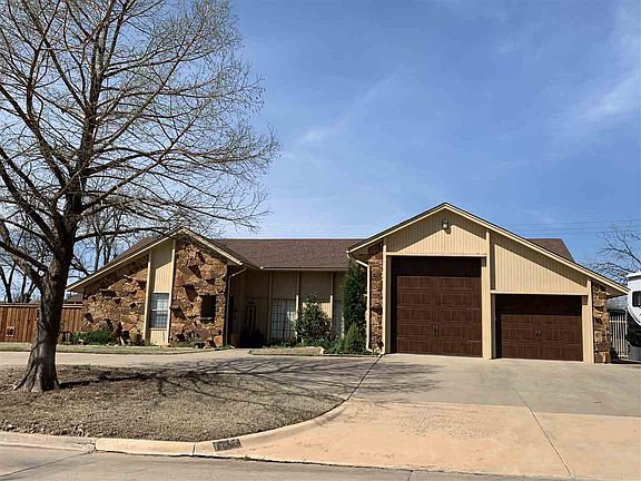 Got cars? Got an RV? This amazing home has a 6 car capacity or use the 34' x 11.5' RV Garage for your vehicles and "TOYS". You must see this stunningly beautiful home that the owner has masterfully remodeled and redecorated. It boasts of new flooring, new granite, new bathrooms, new sinks, new tile, new kitchen cabinetry and appliances. It has 3 living areas, formal; formal dining room, a dining area, an enclosed patio room w/TV, a 2 car garage that is being used as a quilting room, a utility room and more, and it has a saferoom. Above the garage is a massive room that could be a game room, bedroom, or media room and it has a 3/4 bath. The front of the house has an RV garage plus an automobile garage, and the backyard has a 2 car garage currently used as a wood workshop. Inside the master suite is remodeled w/walk-in closets, a new master bath, and it is beautiful. The den is huge with high ceilings and a corner fireplace. Call Jeanne Rock to see at 355-ROCK. Now vacant with MLS lock box.
