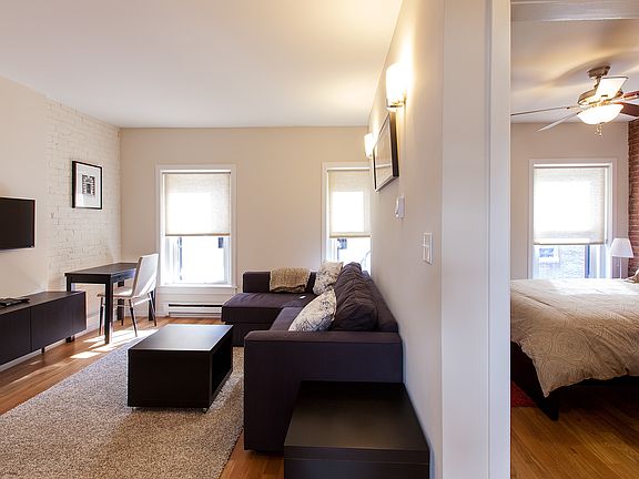 This 4th floor one bedroom suite features a full sized, open kitchen and living room. The brand new unit has polished hardwood floors throughout, granite countertops and new stainless steel appliances. The bedroom features a queen mattress set, nightstand, reading lamp and alarm clock. The bathroom has a beautiful tile surround tub and shower combo. The kitchen is fully equipped with pots, pans and cooking utensils, along with oven, range and refrigerator and a breakfast bar that seats two. The desk in the living room can seat an additional two. The living room has a flat screen TV with local channels, a desk and chair, and the sectional sofa pulls out to a full bed which makes this the perfect unit for two to four people. Please contact bostonrec@gmail.com or (857) 263 - 3073 All rates assume a start date on the posted available date and an end date in April prior to April 13. For any inquires in relation to shorter or longer stays, please inquire with management. $100 Cleaning fee.