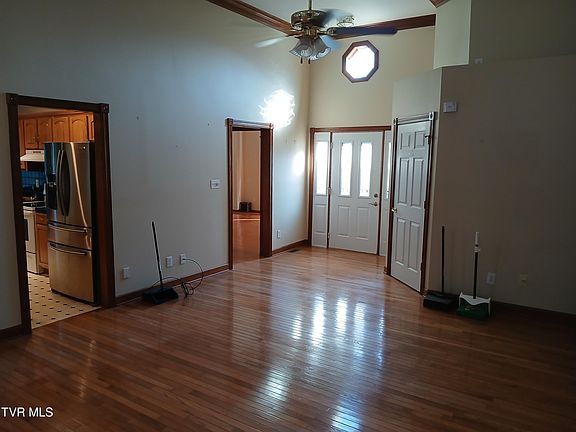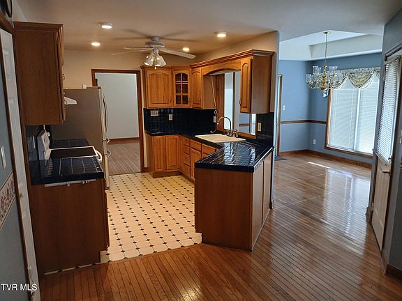 Custom built home with cathedral ceilings, a beautiful fireplace, in the great room. The Master Bedroom and Master bathroom are on the opposite side of the house from the two spare bedrooms. Real hardwood floors throughout. The Master bath has a double vanity, with a whirlpool/Spa tub for two, and a seperate shower, and a water closet toilet. Master Bedroom has a walk-in closet. The kitchen has ceramic tile counters, oak finish cabinets, with an open floor plan, flowing into the breakfast nook and dining room. The breakfast nook and dining room have real hardwood floors. There is a private deck just off of the breakfast nook, and a large second deck off of the dining room. The second bathroom is a standard guest bath (Full). Linen closet in the hallway. It has an over-sized two car garage, with plenty of extra space, with storage space above in the pull down attic. The backyard is private, and has beautiful views of the mountains.