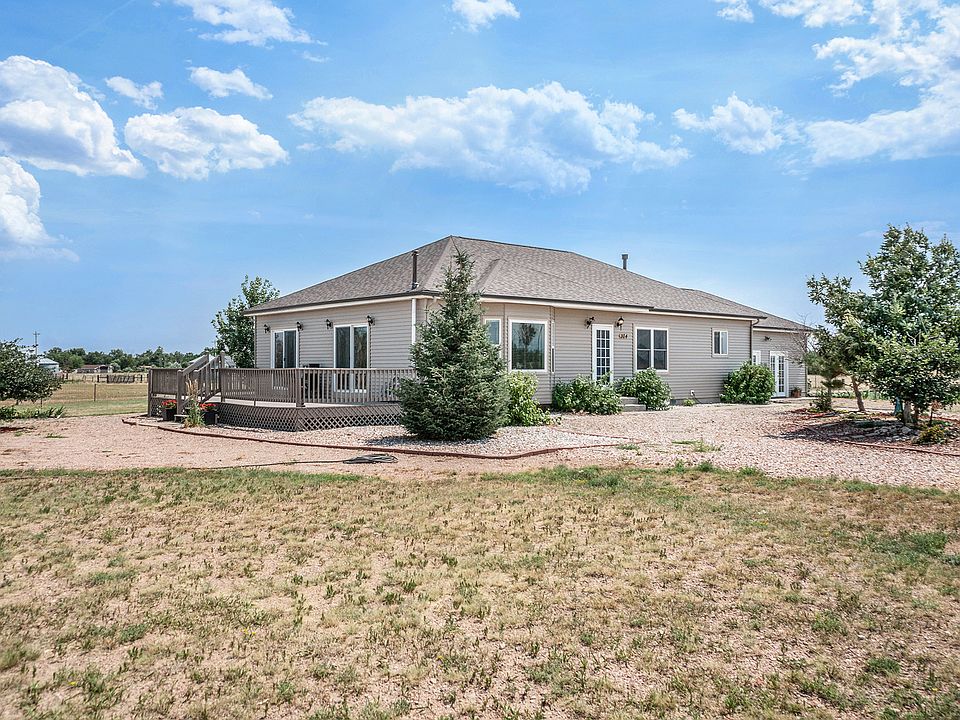 Resting on a little over one acre, lays a stunning home covered in majestic blue skies that seem to never end until met by stunning Colorado sunsets. This home is fit for the adventurer with massive garage space, 50 amp RV hookup, outdoor entertaining area with additional 500 sqft sunroom and more. Home has been crafted for longevity with new class 4 hail resistant roof, steel siding and redone deck. This is fine country living with the convenience of being close to town. New roof class 4 hail resistant new 50 year steel siding new redone deck additional square footage of sunroom approx 500 sq ft 1.09 acres oversize 2 car garage RV 50 amp hookup 12*24 shed with lofts for storage master with ensuite bath jack and jill bath for other bedrooms Country living and close to town Garden: peas, green beans, zucchini, sweet corn, tomatoes, onion trees all around xeriscape landscaping fully fenced mountain views