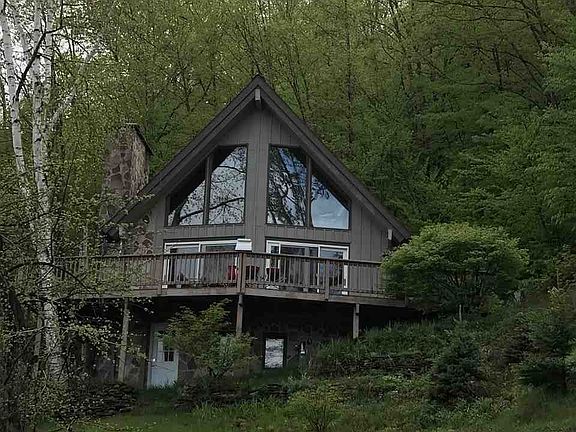 Nestled up on the hill in the woods in the City of Munising, enjoy this stunning view of Munising Bay from each level of this home. This home features cathedral ceilings with loft, natural lighting with tall windows and 2 sliding doors to create an amazing view, bedrooms on both levels, family room and walkout basement, sauna, garage and wrap around deck. This won't last long!