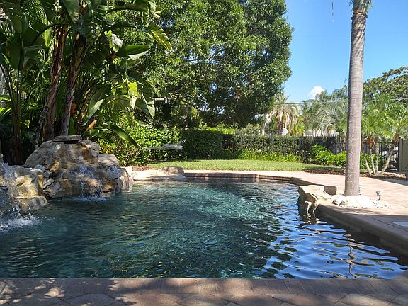 There is something special about this beautiful Belleair home. The house is set on a premium corner lot with gorgeous curbside appeal and lush landscaping. The paver circular drive leads to an arched stone entry. Once inside, there is over 4,000 square feet of living all on one floor. The foyer opens to a spacious and welcoming formal dining room with gas fireplace and living room. The living area features extra tall ceilings and plenty of room for elegant or casual entertaining of family and friends. The luxuriously sized owners suite features two walk in closets, and a spa-like bath with separate vanities. Two spacious guest en-suites feature full bathrooms, while the fourth bedroom is perfectly positioned to become an executive home office. The roomy gourmet kitchen is outfitted with exquisite granite counter tops, stainless steel appliances, and a natural gas stove, while a breakfast bar offers an option for casual dining. The kitchen opens to a charming breakfast nook with expansive aquarium windows offering breathtaking views of the back yard oasis. Featuring a resort-style saltwater pool and lush tropical courtyard, the backyard acts as a private retreat for ultimate relaxation.