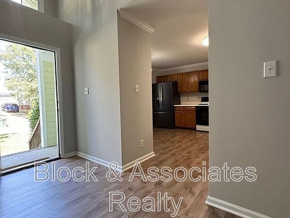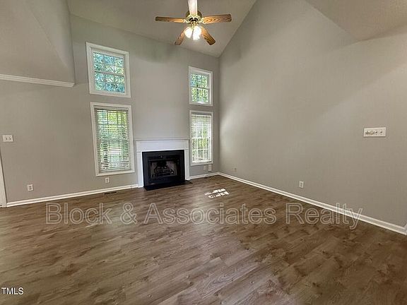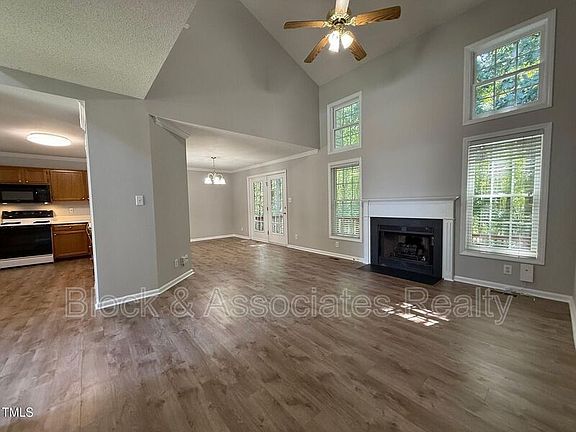 Available NOW! Charming two story home in always popular Park Village, Cary! 3 bedrooms, 2.5 baths. Large eat-in kitchen, bright living room centering on a gas-log fireplace and open to dining room. Large primary suite with vaulted ceilings and en suite bath with double vanity and tile flooring. Huge two-tier deck overlooking wooded backyard. Laundry room includes washer/dryer. Community pool, parks, playground, and greenway access points included! Pets considered - 2 max.