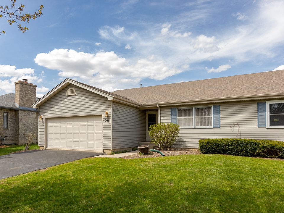 LOVELY 2 BEDROOM ~ 2 CAR GARAGE DUPLEX ~ HARDWOOD FLOORING ~ HUGE KITCHEN WITH TONS OF CABINETS ~ VAULTED CEILINGS ~ SKYLIGHTS TO LET THAT SUNSHINE IN! ~ LARGE GREAT ROOM WITH FIREPLACE ~ SEPARATE DINING ROOM ~ LARGE MASTER SUITE ~ FULL BASEMENT WITH BATH ROUGH IN ~ 9' CEILINGS ~ PARTIALLY FENCED IN YARD ~ NEWER ROOF ~ NO ASSOCIATION DUES!