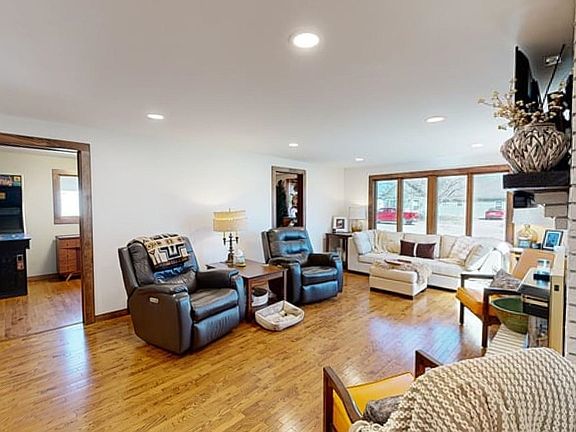 Check out this GORGEOUSLY UPDATED home with room to grow!! Main floor features a huge dining room for gathering with family & friends. Spacious kitchen has custom backsplash, PANTRY, loads of counterspace, beautiful, updated flooring and a coffee bar. ALL APPLIANCES STAY! Adjacent laundry room has plenty of storage! This home's spacious living room includes a beautiful, whitewashed gas fireplace, hard wood flooring and loads of natural light. Four bedrooms on ground level with generously sized primary bedroom that includes double closets and 3/4 bath. Basement includes second living space, bonus room (currently utilized as a guest bedroom), third bathroom and storage room. Don't miss the HUGE 24X38 ATTACHED GARAGE! Yard features alley access and underground sprinklers. This one spacious ranch that has been totally updated and is ready for you in Elwood, Nebraska! CALL TODAY!