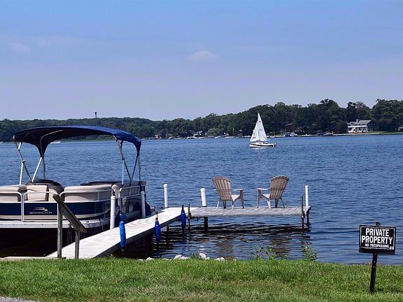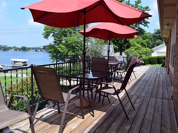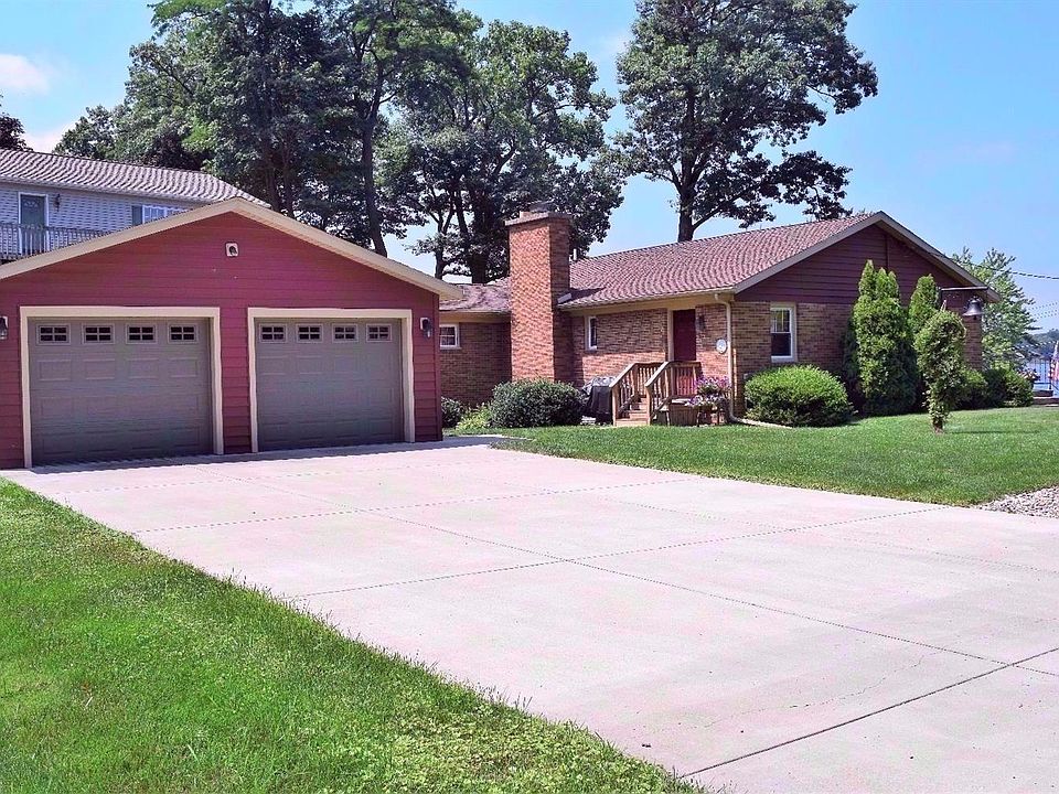 This Pine Lake oasis is the one you've been waiting for. With 118 feet of lake frontage, pier and dock, private boat launch, large front yard and backyard. Long concrete driveway with newer detached garage allows for plenty of guests to park. Solid brick home offers 3 bedrooms and 2 baths, four seasons room, main floor laundry, hot tub with views of lake, and large master bedroom. Eat in Kitchen has Maple cabinets, hardwood floors, stainless steel appliances and island with bar. All appliances to remain with home, water softener is rented. Basement has two workshop areas, large rec room and a walk out garage. Don't miss your opportunity to own your spot on this all sport lake. Make your dream of lake living a reality!