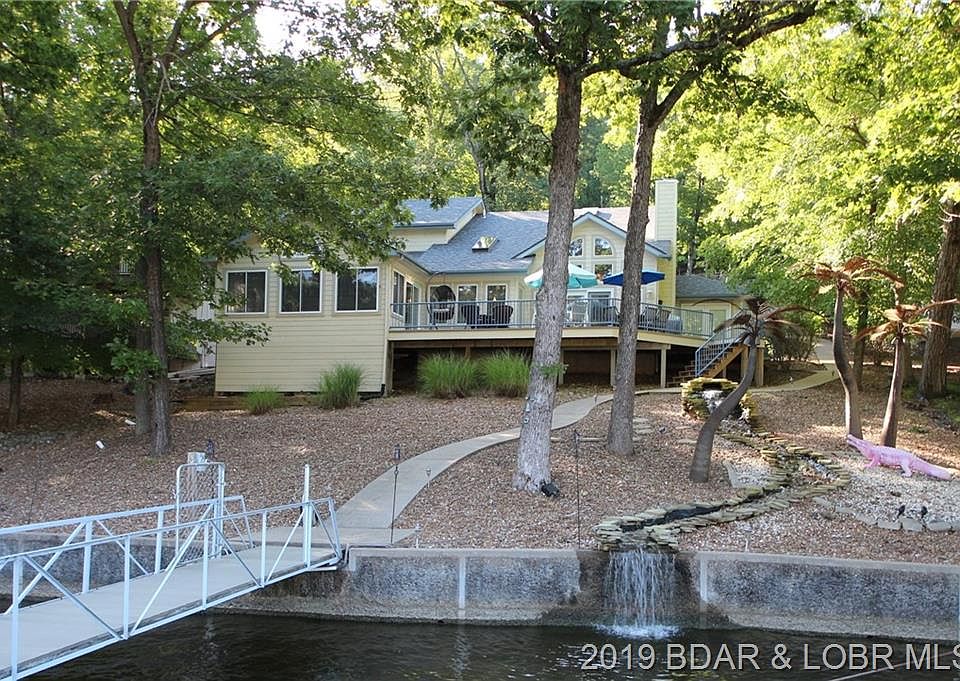 If you don't have fun at this darling lake home, you won't have fun anywhere at the Lake! Move In Ready is an understatement - all new roof, new siding, remodeled kitchen and baths, new composite decking on home and dock, beautiful light filled rooms greet you upon entering. Wide open floorplan invites guests and family to sit back and enjoy. Two living areas are perfect for multiple family gatherings. Gorgeous updated kitchen with new appliances, granite and cabinetry; updated baths with walk-in custom tiled shower in the master, fantastic large deck with beautiful canopy of mature trees to enjoy our scenic outdoors. Quiet cove and super protected swimming with a large envelope for dock space. Dock has new composite decking, a very cool tiki bar with full refrigerator and tv plus extra storage and fish cleaning station. Love the landscaping with a great waterfall and a pink alligator for charm. Near level walk out to the waterfront. This lake home ROCKS!