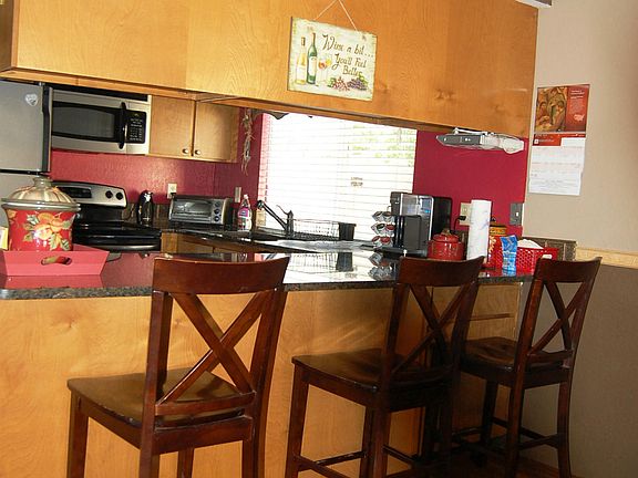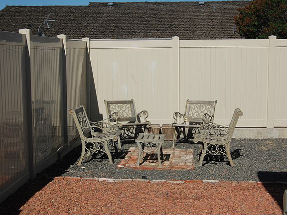 Beautiful updated zero lot line condo. Granite counter tops in bathrooms and kitchen, new floor coverings, newer furnace and a/c. Private back area with vinyl fencing and potential for RV parking. Fireplace in living room, vinyl windows and newer roof. Ready to move into.