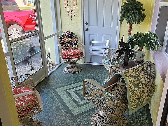 Hidden screw metal roof installed 2023 New aluminum fascia, softfit and gutters new double pane windows with hurricane shutters plus Plantation interior shutters. on all windows, except kitchen. All exterior doors have been replaced as well as a screened in front porch with ceiling fan. New air conditioner installed in 2021. The rear paver patio measures twenty by twenty seven and continues with a paver sidewalk to the driveway. Landscape has been updated with commercial grade fabric and rock. A whole house water filter system and bonus attic storage as well. Exterior recently painted as well as garage interior ceilings and walls.