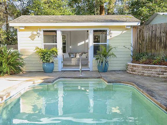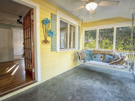 Imagine living in an adorable Fairhope Cottage less than a block from the bay with deeded bay access. Walk to Downtown for the afternoon or spend some time lazing by the pool in the oasis back yard. You could also take a nap on the oversized swing on the screened front porch! This cutie has had major renovations recently including a completely new kitchen with stainless appliances in 2018, an updated master bath suite in 2007, a backyard transformation with a salt water pool, air conditioned cabana, air conditioned art studio, custom landscaping with sprinklers and privacy fence in 2009, and a new HVAC in 2017. The traditional cottage has a coastal flair with bead board walls in the living room, kitchen and master bath, as well as original oak floors. The dining area has subway tile to the ceiling and built in wood shelves into a natural stone mosaic.