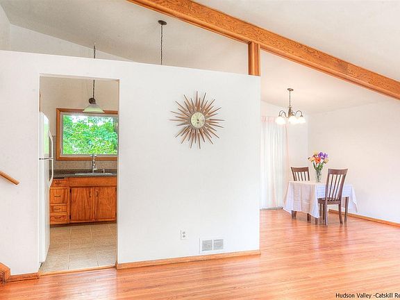 Set back from the road on a hill this 4 bdrm, 2 ba contemporary split level sits on .91 acres located in a sought after Highland neighborhood. The home features an open and bright floor plan with large picture windows, spacious and sun-drenched living room with sprawling ceilings, dining area, eat-in kitchen, updated bathrooms, 3 spacious bedrooms on upper level, newly finished walk-out lower level w/ 4th bdrm, laundry/utility room with potential for an in-law suite. Peaceful views, pond and barn! Many upgrades here: windows, boiler, plumbing, gravel driveway, interior paint, kitchen & baths!