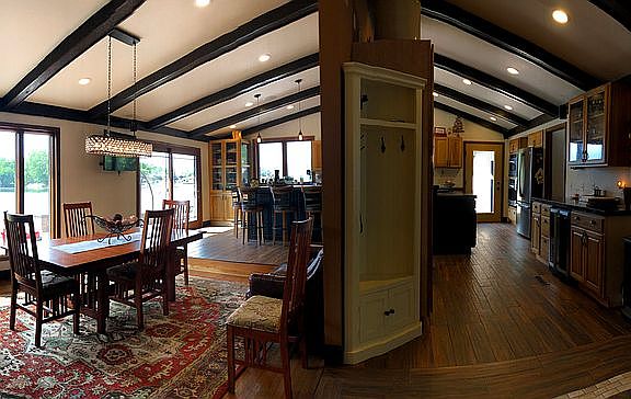 - No Brokers Please - Half-acre waterfront lot on secluded cul de sac surrounded on three sides by 6-foot fence and sand beach to the west. House features many upgrades and improvements including large open concept kitchen and formal dining area with wood beam vaulted ceiling. Remodeled in 2016, this section of the house features new windows, custom concrete countertops, hickory cabinets, whole house sound system with outdoor speakers, beverage bar, and large island with abundant seating. State-of-the-art, high capacity septic system installed in December 2019. Home is ideal for large family and entertaining with two family rooms, three fireplaces, and an additional bar area. A 950 sq. foot paver patio was added in 2019 for outdoor entertaining. Three car heated garage and 9 x 16 ft. utility shed. Home includes many other upgrades including new flooring in kitchen, both family rooms and loft office with hardwood and tile in remaining areas. Enjoy beautiful sunsets, boating, fishing, swimming, and solitude on large lake with great neighbors that’s outside of the hustle and bustle, but just 7 minutes from central Grand Island. Call for more information. No brokers please.