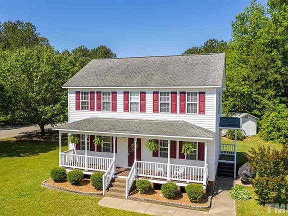 Beautiful 3 bedroom home, freshly painted on a large corner lot. A dream rocking chair front porch, oversized family room w/ fireplace, separate formal dining room, breakfast nook, 14.5x15 sunroom, and lots of natural light! Master bedroom w/ vaulted ceiling and WIC. Updated Kitchen w/ stainless steel appliances. This spacious yard is perfect for entertaining & enjoying family time. Playset & shed! Phenomenal location, close to Clayton Community Park, hwy 70, I-40, shopping, and restaurants! See 3D Tour!