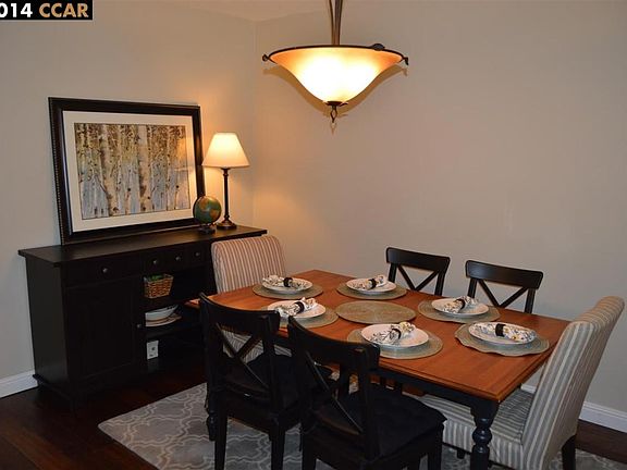 Gives you the feeling of single family home! Available from July 1st. Lease term: Minimum 1 year Nicely upgraded Main Chance townhome with two patios! On the quiet side of the development, walking distance from BART! Two master suites (carpeted) upstairs with attached bathrooms; in unit laundry; new hardwood floors and a/c; formal dining room; fireplace; eating area in kitchen. Property features: - Stainless Steel Appliances (includes Refrigerator, Dishwasher, Electric range/Cooktop, Microwave, Washer and Dryer) - High Ceiling - Lots of storage - 1 covered/secured parking spot. One open spot available with permit. Other open spots available for extra parking - Single unit with common wall with other units - Includes major utilities: Water, Sewage, Garbage Other features: - Community facilities include Swimming pool and Tennis Court - Close to Walnut Creek Downtown - Walking distance to BART - Easy Freeway Access - Peaceful Neighborhood - High rating schools (Walnut Creek School District) Pets not allowed. If interested, please respond to this posting and a showing appointment can be scheduled. HOA, Trash, Sewer and Water Utilities are included in the Rent.