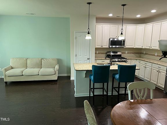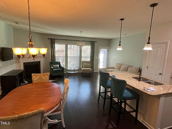 This delightful 3 Bedroom/2.5 Bath townhome is located in the highly sought-after Apex area. The foyer leads into a bright living space that combines a family room, kitchen, and dining area. The kitchen features beautiful granite countertops, ample storage, a pantry, and a center island with pendant lighting and seating. The family room includes a cozy gas fireplace and a lovely chandelier. The master suite offers a spa bath with a separate shower, garden tub, double vanity, water closet, and a spacious walk-in closet. Additional features include a pull-down attic, an oversized one-car garage, and a private patio with guest parking. The community offers a clubhouse, pool, tennis courts, and nearby walking trails. It's conveniently located near major highways, shopping, and entertainment. Please refer to the MLS attachments for a list of included furniture items.