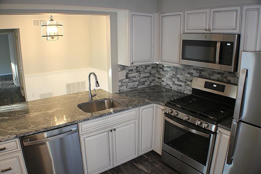 Mount Laurel, Le Club II, 2nd Floor Completely New 2 Bedroom 1 Full Bath Condo in the convenient location of Mt. Laurel. Near Route 73, Route 38 and a couple minutes to 295 and the Turnpike. This bright and spacious, 2nd floor, 2 bedroom 1 bath condo was just completely renovated from top to bottom! It has a large, open floor plan in Mt. Laurel's desirable Le Club II and backs to the beauty of grass and trees with a private balcony off your family room. The unit is freshly painted with neutral colors and has beautiful, rustic look flooring throughout. The main living areas as well as the kitchen have crown molding and there is new tile flooring in the bathroom as well as the laundry room. The large family room has a remote controlled ceiling fan and sliders that open to your private balcony. It is open to the gorgeous dining room that has wainscoting, crown molding and a new light fixture. Brand new HVAC as well as a new hot water heater was just installed. The Brand new kitchen has wood cabinets with soft close cabinet doors and drawers along with a full set of stainless steel appliances with a gas range/stove for even the pickiest of chefs! The granite countertops, marble backsplash and crown molding complete the space and the countertops extend into to the dining area could easily double as a breakfast bar. The large master bedroom has a double window and a huge walk-in closet. It has a private access door to the bathroom, which has new cabinetry, granite counter, tile floors, tiled shower as well as all new fixtures. The laundry room has a new full-sized washer and dryer with extra shelving. There is also a large attached storage shed off the private balcony for additional storage. Truly a wonderful place to call home! Call to make an appointment to walk through this desirable condo in a great location! CALL This is a smoke free condo and sorry NO pets. Available January 1, 2022!