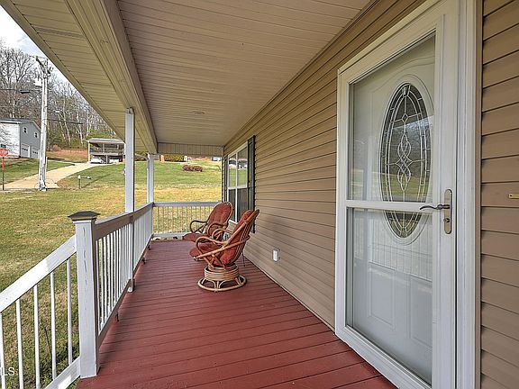 Covered front porch, and nice back deck that overlooks the fenced ingound pool. Two car drive under garage, lovely landscaped lawn.