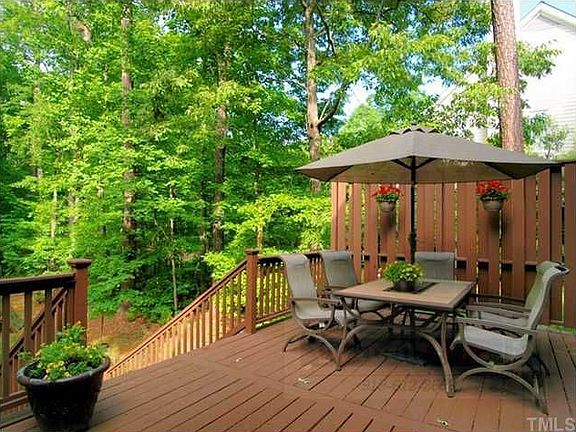 Rare Find in Reedham Oaks! Huge Lot in NR!Almost totally Brick Two Story Four Bedroom Two and one half Baths. Hardwoods throughout downstairs and guestroom. Master has Trey Ceiling w/ His and Her Closets and Fabulous Bath. Bonus with built-ins. Beautiful cabinetry in familyroom and living room. Oversized deck and 1.31 Acre lot w/ Playground. Covenient to 540, RTP, and Shopping.
