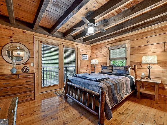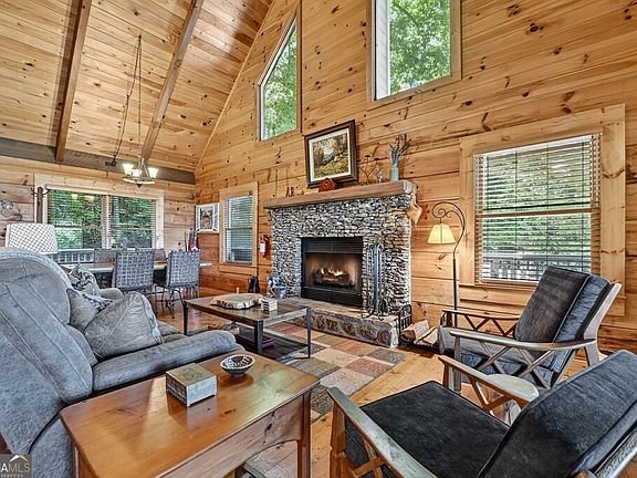 Quintessential Mountain Living - This mountaintop cabin has it all: location, view, privacy & appeal! This 3BR, 3BA chink dovetail real log home offers a spacious open floor plan great for entertaining yet offering privacy. From the moment you step inside, you'll notice detailed cabin finishes including rough sewn beams throughout, pine wood flooring, soaring cathedral ceilings, lot of windows & fixed glass in great rm & rustic style staircase w/ mountain laurel "twig" stair railings & pickets. Large covered porch spans front of home connecting to open side wrap around deck overlooking this gorgeous layered year round view offering the mountains w/ Lake Blue Ridge Mountain view. Finished terrace level features Rec Rm/Den + BR/BA opening onto terrace level patio featuring a hot tub & outdoor seating + pathway to outdoor living fire pit area offering the perfect relaxation needed for the close of your day. Primary suite upstairs features oversized BR & BA w/ small loft perfect for a home office, reading nook, additional sleeping or whatever flex purpose you may need + private "treehouse" balcony". w/ private "tree house" balcony porch. Located in the prime Aska Adventure Area near Lake Blue Ridge, the Toccoa River & approx. 10 minutes to downtown Blue Ridge offering easy access to shopping, dining, local attractions, activities & more. This property is only one property away from being directly adjacent to USFS, great for future built in privacy. Nestled on 1.88 beautiful wooded acres w/ towering hardwoods & native flora galore offering lots of privacy. This would be an amazing short term rental (STR) investment opportunity. May be purchased turn key for a one stop shop!